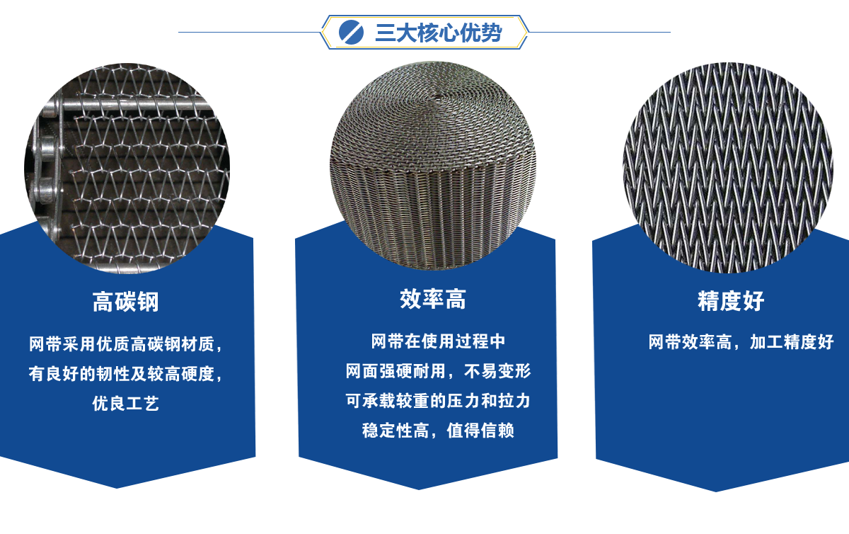 不銹鋼網帶是一種摩擦驅動以連續方式運輸物料的機械。應用它,可以將物料在一定的輸送線上,從開始的供料點到最終的卸料點間形成一種物料的輸送流程。它既可以進行碎散物料的輸送,也可以進行成件物品的輸送[詳細]